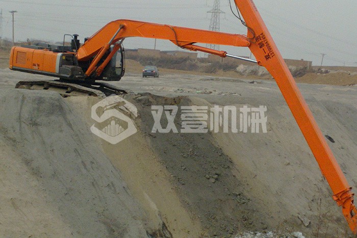 雙壹公司備有多臺(tái)長臂挖掘機(jī),15-200米各種長度,一站式解決您的深坑挖掘難題。
