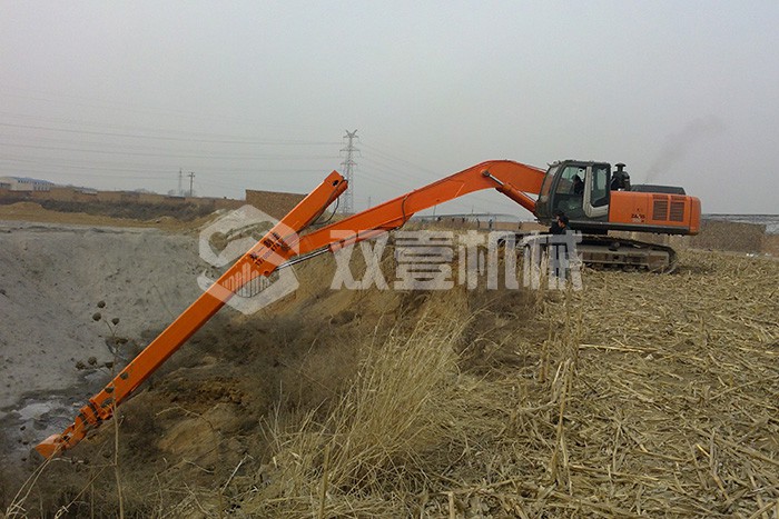 超長(zhǎng)四節(jié)臂:總長(zhǎng)度可達(dá)48米,臂內(nèi)可再伸出3節(jié),施工深度42.5米,配帶貝殼斗1.8立方或挖掘斗1.0立方。