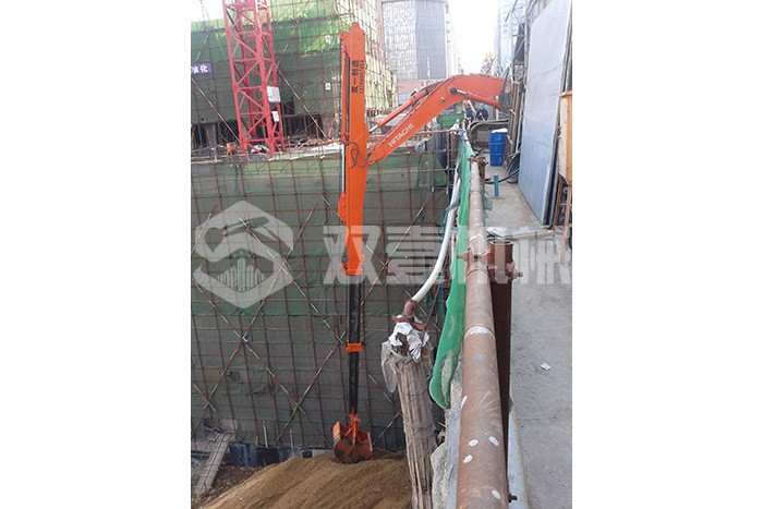 超長四節(jié)臂:總長度可達48米,臂內可再伸出3節(jié),施工深度42.5米,配帶貝殼斗1.8立方或挖掘斗1.0立方。
