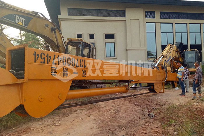 超長(zhǎng)四節(jié)臂:總長(zhǎng)度可達(dá)48米,臂內(nèi)可再伸出3節(jié),施工深度42.5米,配帶貝殼斗1.8立方或挖掘斗1.0立方。
